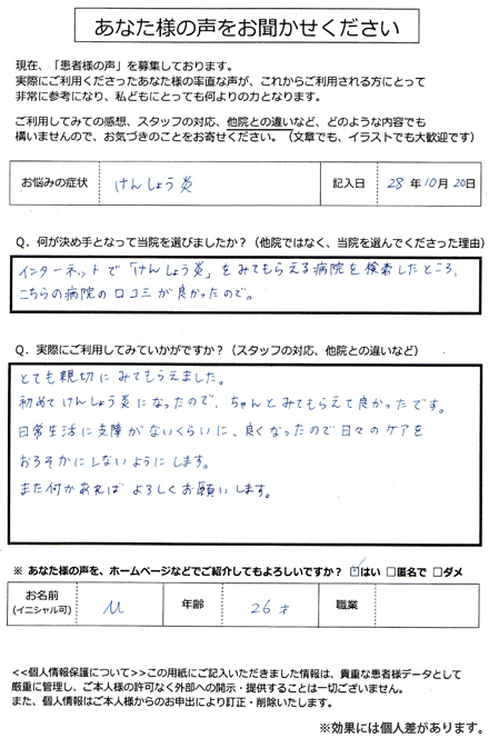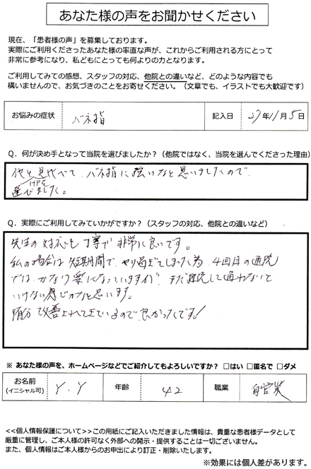 色々と通っていたのですがなかなかよくならず、当院に来て先生の説明などを聞き、