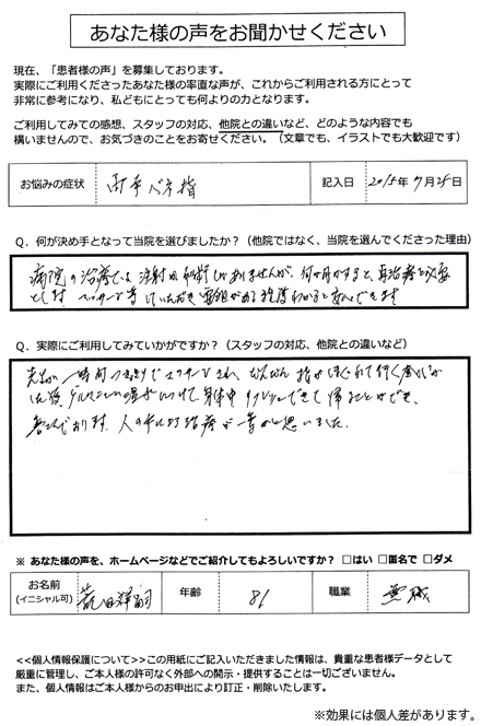 握力も弱くなっておりましたが、今ではスッキリされほんとうによかったです。
